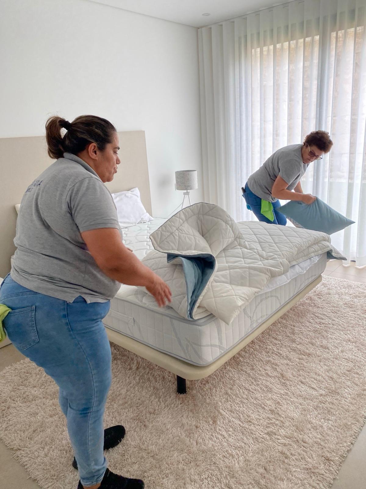 Para além de toda a limpeza, mantemos a sua casa organizada, trocamos a roupa das camas, toalhas de banho e tapetes, etc. proporcionando uma experiência única de lazer e bem-estar aos seus hóspedes.
